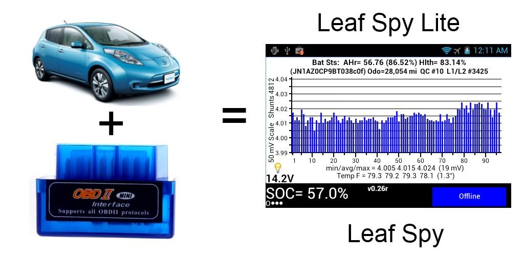 The leaf spy software allows anyone with a nissan leaf electric vehicle, android system with bluetooth and an elm327 obdii bluetooth adapter the ability to observe their battery and other automobile information normally seen only to the vendor.